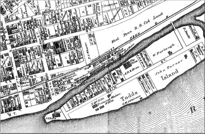 Also notice the pig pens across the channel on the island (identified as A.G. & Bros.)