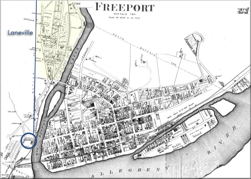 The portion of Laneville shown is in Armstrong County, but the community